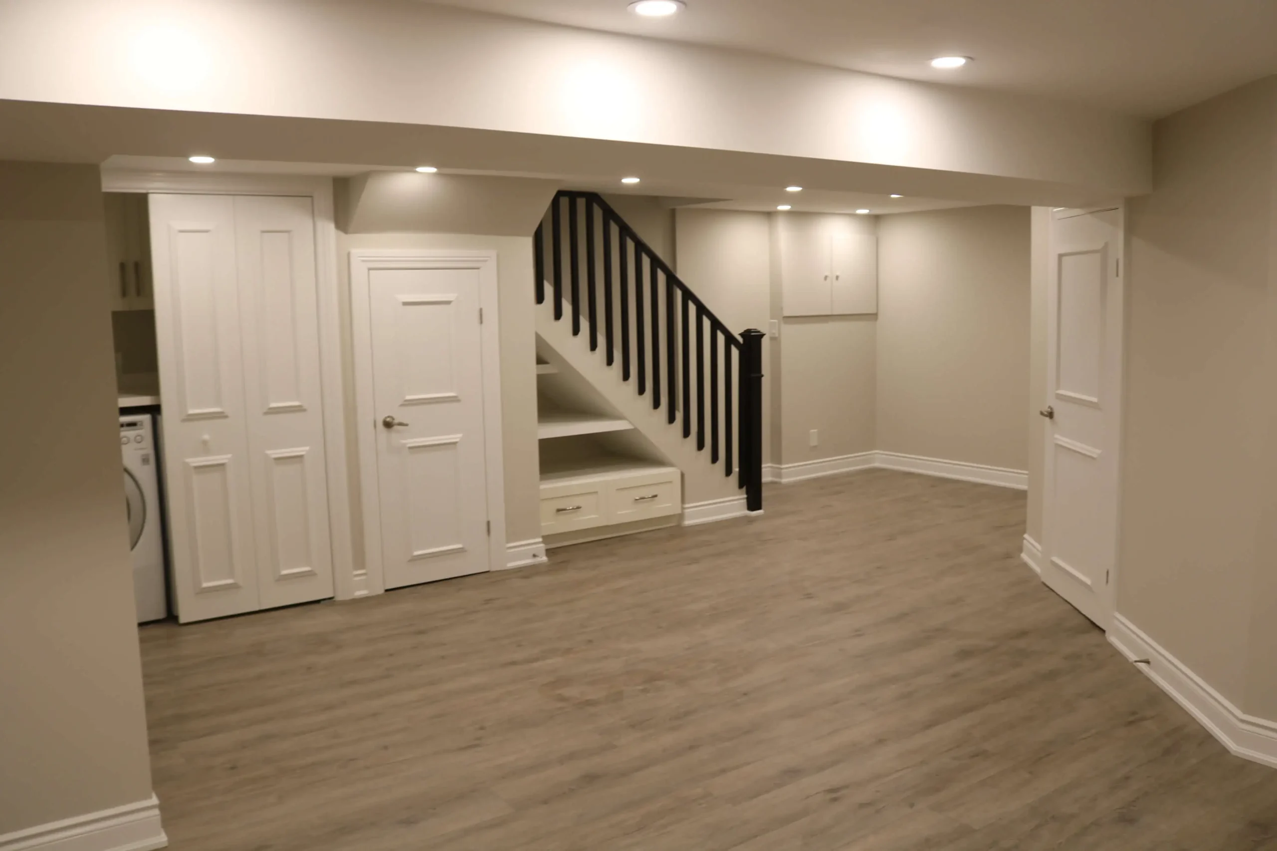 We start with waterproofing and foundation repairs, then move to framing, plumbing, electrical, insulation, drywall, and finally flooring and finishing. Every step follows strict Ontario Building Code requirements.